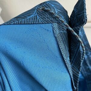 This listing is for a pair of Mack Weldon Printed Hybrid Shorts. Blue/Black all-over palm leaf print. Snap closure / interior drawstring at the waist. Zip pocket at the front leg. Polyester/Spandex.