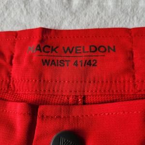 Mack Weldon Shorts 41/42 Mens Red Hybrid Board Golf Zip Pocket Stretch. Measures 21.5 inches across the waist, 13.5 inch rise, 8 inch inseam. Has light wash wear, no stains, no holes, a few small snags on the front-- see photos.