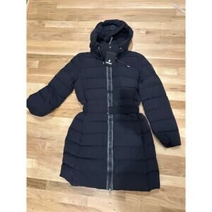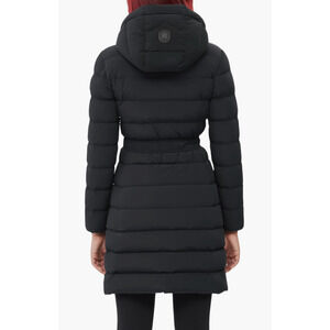 ASHLEY boasts light reycled down for women quilt tiers and a removable drawstring hood with adjustable storm visor. A ruched shell belt with Velcro clasp structures the semi-fitted three-quarter. The protective water resistant and repellant weave features 2-way stretch for movement and weatherproof protection. A high-performance essential with a sharp silhouette for seasonless styling.