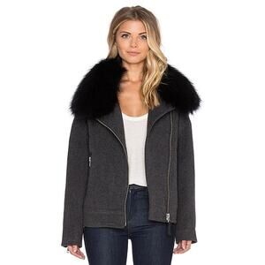 Mackage Felipa Charcoal Wool/Nylon/Cashmere Jacket Asiatic Racoon Fur Trim Small