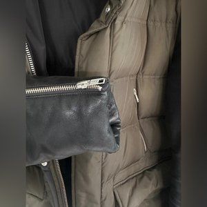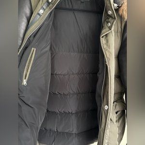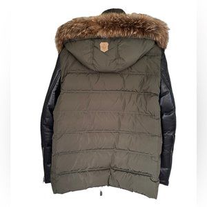 Mackage Gavin Army Green Down Coat with Leather Sleeves and Fur Hood