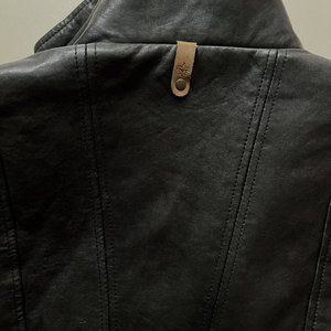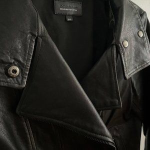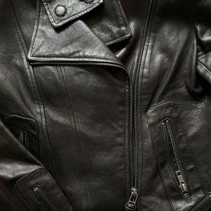 Aritzia x Mackage Kenya leather jacket in black. Buttery soft leather. Classic and rare. Excellent used condition; basically as new, worn only a couple of times. Leather pretty much shining and perfect. One wrist zipper gets stuck, see pictures, but it’s zipped closed which is how it should always be worn. Priced accordingly for this flaw.
