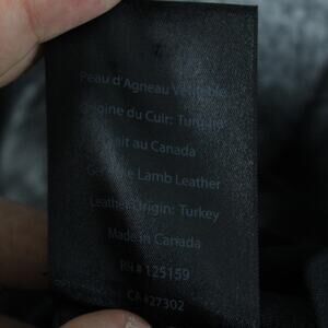 Material: Genuine lamb leather shell with fabric interior lining (per tag).