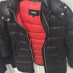 Stylish Mackage jacket. Vibrant red color. Perfect for any occasion.