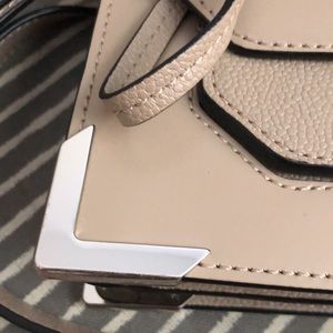 Adorable genuine leather crossbody purse with cute top handle. Has two main compartments with cardholder and a small front pocket.