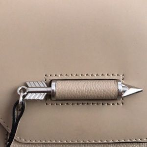 Beautiful smooth leather exterior with luxurious textured leather sides. Lovely arrow lock detail makes this bag unique. Metal corners show some signs of normal wear as can be seen in pictures. Otherwise, in very good condition. Don’t miss out!