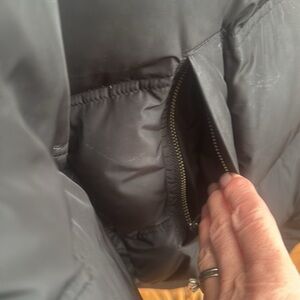 Great warm jacket. Has 90% duck down 10% feathers Comes with an extra button. All pockets has zippers except for the breast pockets. It’s a very expensive jacket