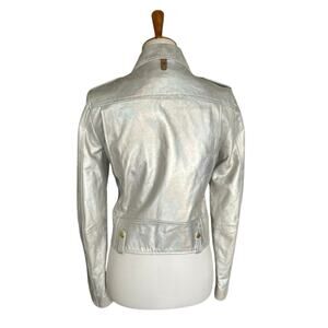 Mackage Silver Lambskin Leather Motorcycle Jacket, Womens, Size XS