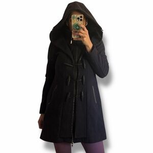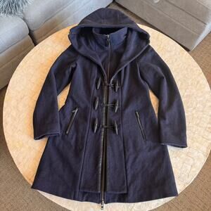 Mackage Wool Cashmere Jacket Coat navy blue gorgeous EUC hood hooded toggles M