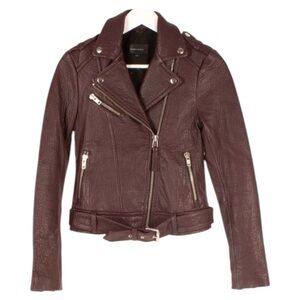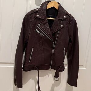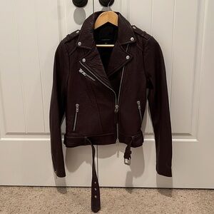 Mackage x Aritzia | Rumer Moto Leather Jacket in Maroon - Size Medium