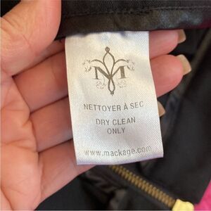 These sleek black skinny pants from Mackage are crafted from a solid fabric, offering a modern and streamlined silhouette. The stylish zipper accents add a touch of sophistication, making them perfect for both casual and business casual settings. Excellent condition