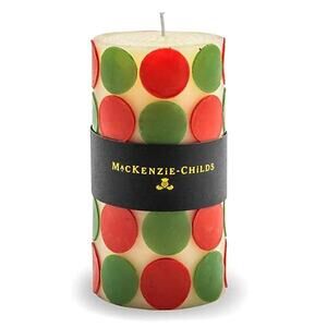 MACKENZIE-CHILDS Macrodot 6" Red & Green Pillar Candle