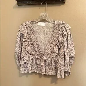 Cute, casual ruffled top. 100% cotton. Machine wash.