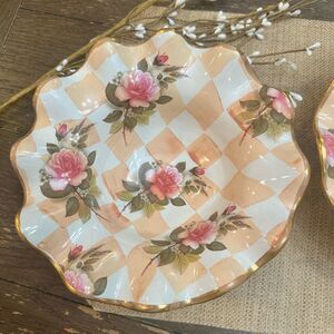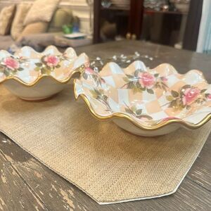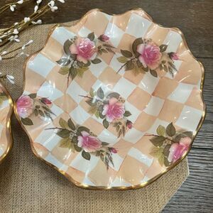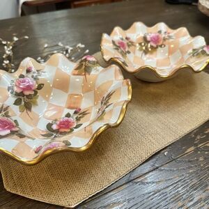 Mackenzie-Childs Orange Marmalade Honeymoon Check 2 Pc Fluted 8.5” Bowls Vintage