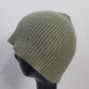 Mackie Scotland Wool Angora Ribbed Knit Beanie Hat OS unisex green grunge