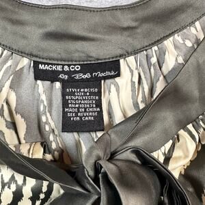 Step into upscale style with this Mackie and Co by Bob Mackie blouse! This garment is in excellent preloved condition, ready to elevate your wardrobe. The unique green and cream pattern offers a chic and sophisticated look. Perfect for pairing with your favorite skirts or trousers.