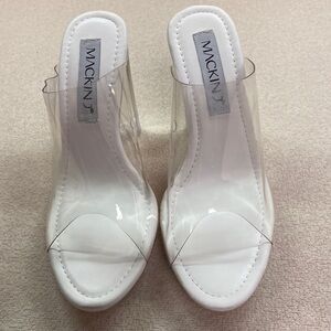 Mackinj Transparent Open Toe 4.5” Block Heel Size 7