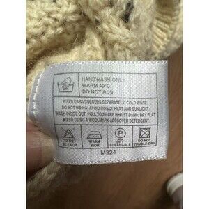Gorgeous, traditional fisherman's sweater in excellent condition. It will arrive clean from a hand wash in Woolite, followed by drying outside in the Midwest fresh air and sunshine on a laundry rack. Excellent condition. See photo for measurements.
