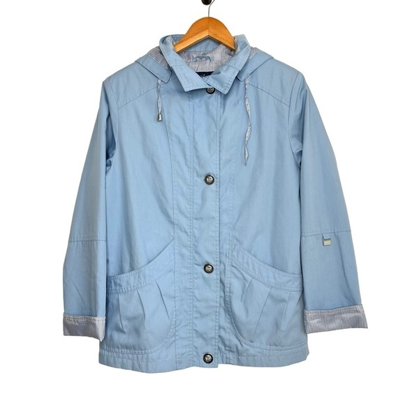 Mackintosh New England Womens Button Up Jacket Petite Small Blue Detachable Hood