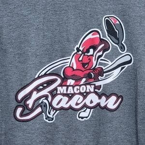 Short sleeve gray graphic tee with Macon Bacon baseball team logo.