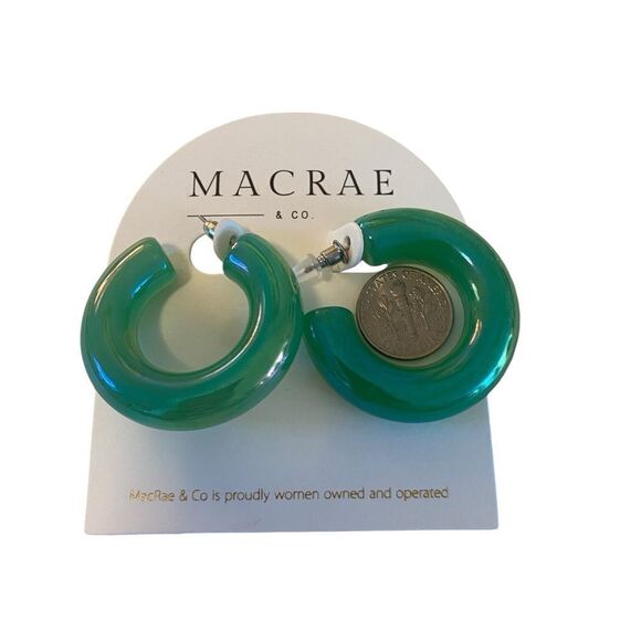 Macrae & Co. Shimmering Iridescent Green Thick C Hoop Earrings.