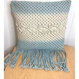 Macramé Pillow in Blue and White 18 x 18 Removable Cover Boho Chic