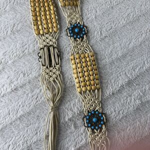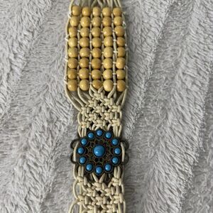 Macrame Beaded Tie Waist Belt Retro Western Boho Festival Turquoise Color Detail