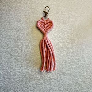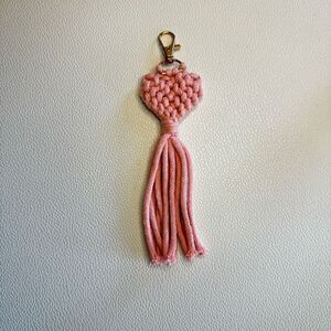 Macrame Charm Purse Keychain Pink Heart FAST SHIP NEW