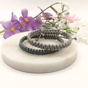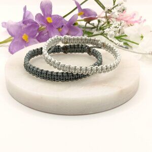 Handmade braided bracelet in macrame style, using 1.5 mm nylon cord. Available in three shades of gray โ mix, match, or stack them!