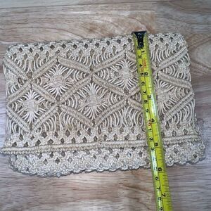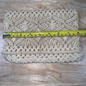 Macrame Crochet Clutch Mini Bag in Natural Beige Fold over Flap, Zip Top Closure