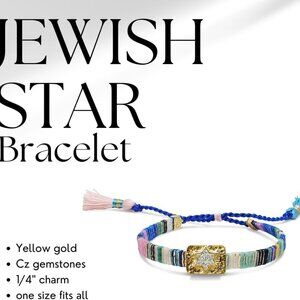 Macrame Friendship Bracelet Blue Gold Star of David Jewish Faith Gift