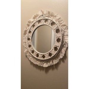 Macrame Hanging Wall Mirror with Boho Fringe Round Decorative Mirror