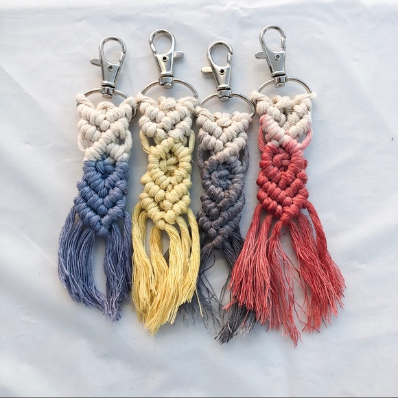 Macrame Keychain I have four colors blue, gray, yellow, and red if you would like another color let me know.