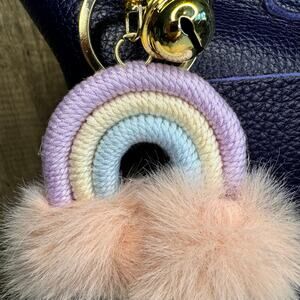 I ship orders same day or next business day if same day isn’t available. This is a New macrame purse charm. It has a clasp, a keyring, and a little bell on the top and then fluff balls at the bottom of the rainbow. It is so beautiful to add as a purse charm or crossbody. I have it pictured here on a Portland Leather Mini Crossbody purse for size reference. The purse is not included, added it to show what it looks like. Measurements: 4.5 inches long including loop (Measurements are as close as I can get them, they might vary slightly because these are handmade overseas). Add multiple items to your cart from my shop, and shipping will combine automatically. Thank you for checking out West Hills Studio, we have a small art studio in Oregon so you’ll see some our creations here as well as brands we like. Some items may be cross posted. Note: It is NEW. Leather Bags Leather purse Charm Bag Flair