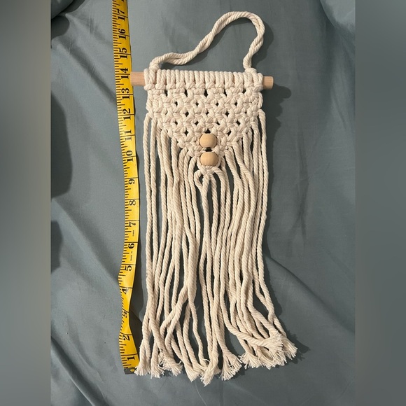 Beautiful cream macrame wall hanging with wooden beads. Perfect for adding a boho touch to any room.
