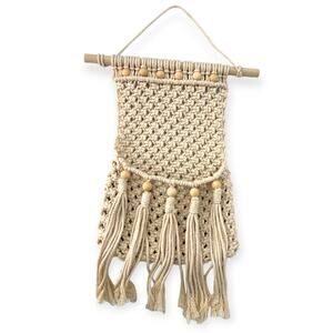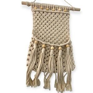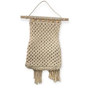 Macrame Wall Hanging Decor Pocket Fringe Storage Boho Wooden Bead Rope 20"X12"