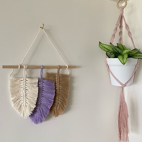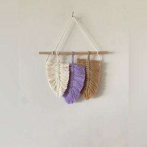 Macrame feathers wall hanging. 12” wide wood dowel.