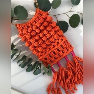 Color is bright beautiful Orange made of organic soft macrame cotton rope.