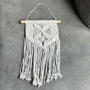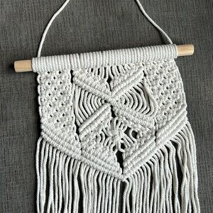 Enhance your home decor with this elegant handcrafted cream macrame wall hanging. Perfect for adding a touch of bohemian style to any room.