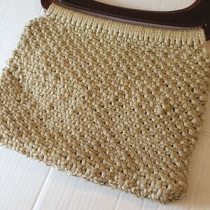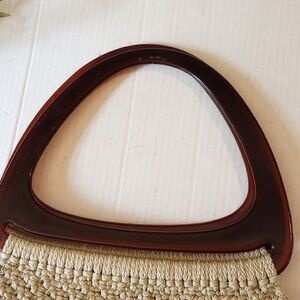 tan macrame with dark brown acrylic handles