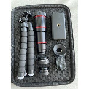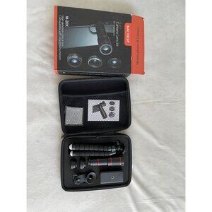 Enhance your photography with this professional-grade 4-in-1 lens kit. Includes a 20X telephoto zoom lens, tripod, and other essential accessories for smartphones.