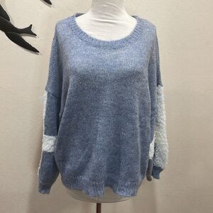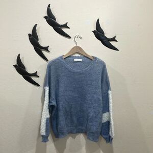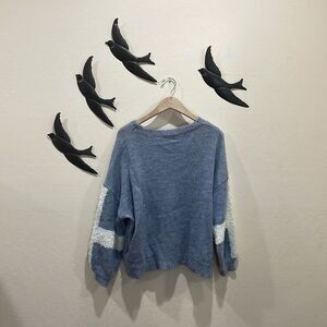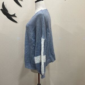 Macy Mccoy Australia Blue & White Fuzzy Cotton Blend Slouchy Sweater - O/S