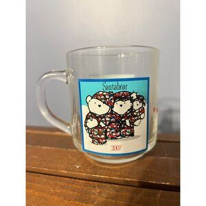 Macy's 2007 Santa Bear Family Glass Mug Christmas Drinkware‎ Dept Store Y2K