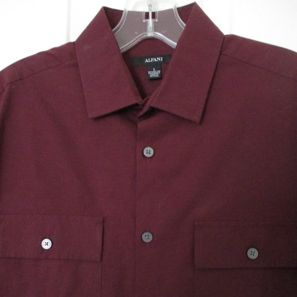 Macy's Alfani Mens L/S Burgundy Wine Cotton Stretch Dress or Casual Shirt- Small