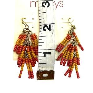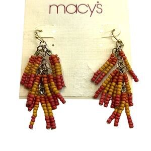 Macy’s Beaded Tassel Earrings, Orange & Yellow, NWT