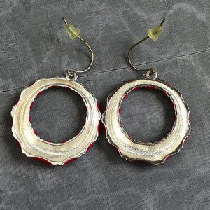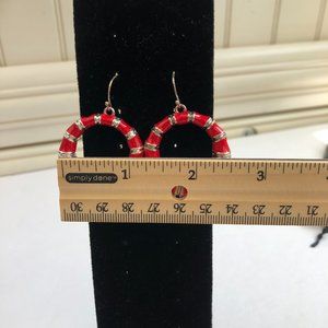 Macy's Coastal Bamboo Enamel Coated Red & Silver Hoop Earrings. Excellent pre-owned condition.