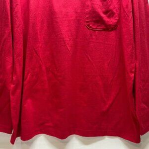 This mens long sleeve tee was part of a set and does NOT include the bottoms. Red Long sleeve crewneck pocketed tee, brand new. Please see all photos as this is the exact garment you will receive. Measurements taken with item laying flat- armhole to armhole is 24.5", length from high point of shoulder to bottom hem is 31". 60/40 cotton/poly blend, machine wash cold.