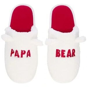 Macy's Family Pajamas Mens Papa Bear Faux-Fur Slippers White Red Small 6-7 New