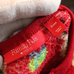 Super cute soft fleecy footed onesie. This has been gently used with no rips or stains, although the white on the bottom of the footies are dingy from wear. Fits a size 24M for a boy or girl.