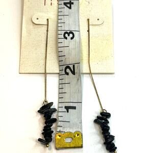 Cute dangle earrings by Macy’s! Gold chain with black gemstone beads. NWT!
